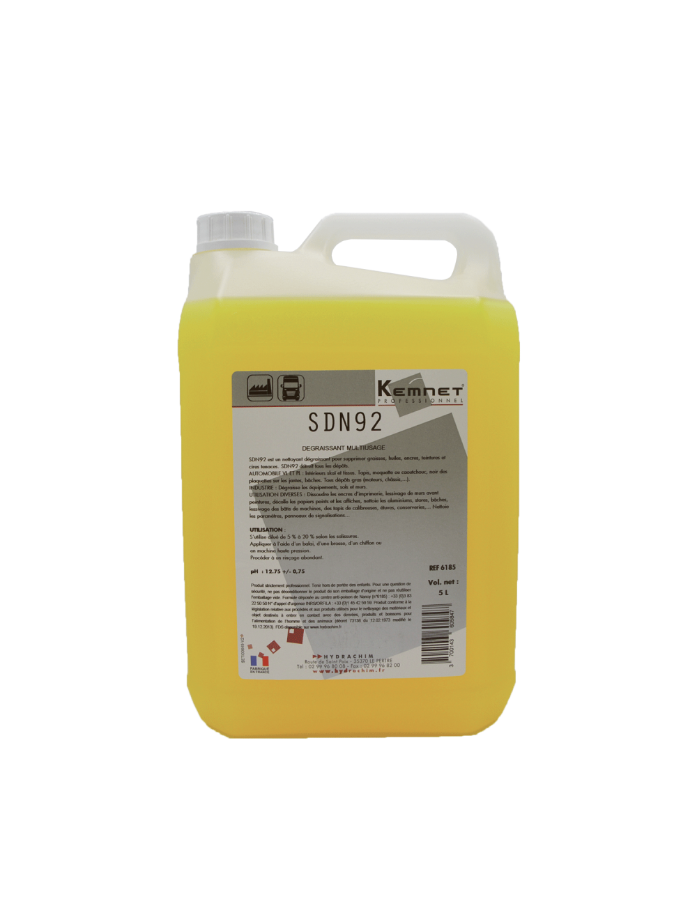 SDN92 est un nettoyant dégraissant pour éliminer les graisses, huiles, encres, teintures et cires tenaces. SDN92 détruit tous les dépôts.