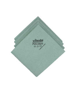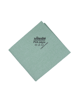 La PVA micro est une lavette unique en microfibre tricotée imprégnée d'une fine couche de PVA (Polyvinyl Alcohol). La microfibre garantie un nettoyage performant et la couche de PVA permet de faire briller vos surfaces. La combinaison des deux, offre un résultat de nettoyage hygiénique, sec et sans trace sans l’usage de détergent.
