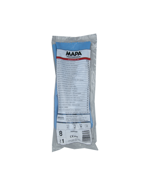 Ne pas utiliser les gants en contact avec un produit chimique pour une durée supérieure au temps de perméation mesuré. Se référer au site internet www.mapa-pro.com ou contacter le Service Technique Client Mapa Professionnel (stc.mapaspontex@mapaspontex.fr) pour connaître ce temps de perméation. Utiliser deux paires alternativement lors de contact de longue durée avec un solvant