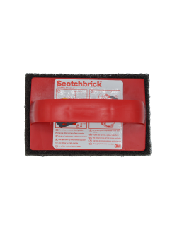 La Poignée Tampon Rouge 3M™ Scotch-Brick™ permet de retirer les résidus alimentaires brûlés des plaques à toutes les températures.