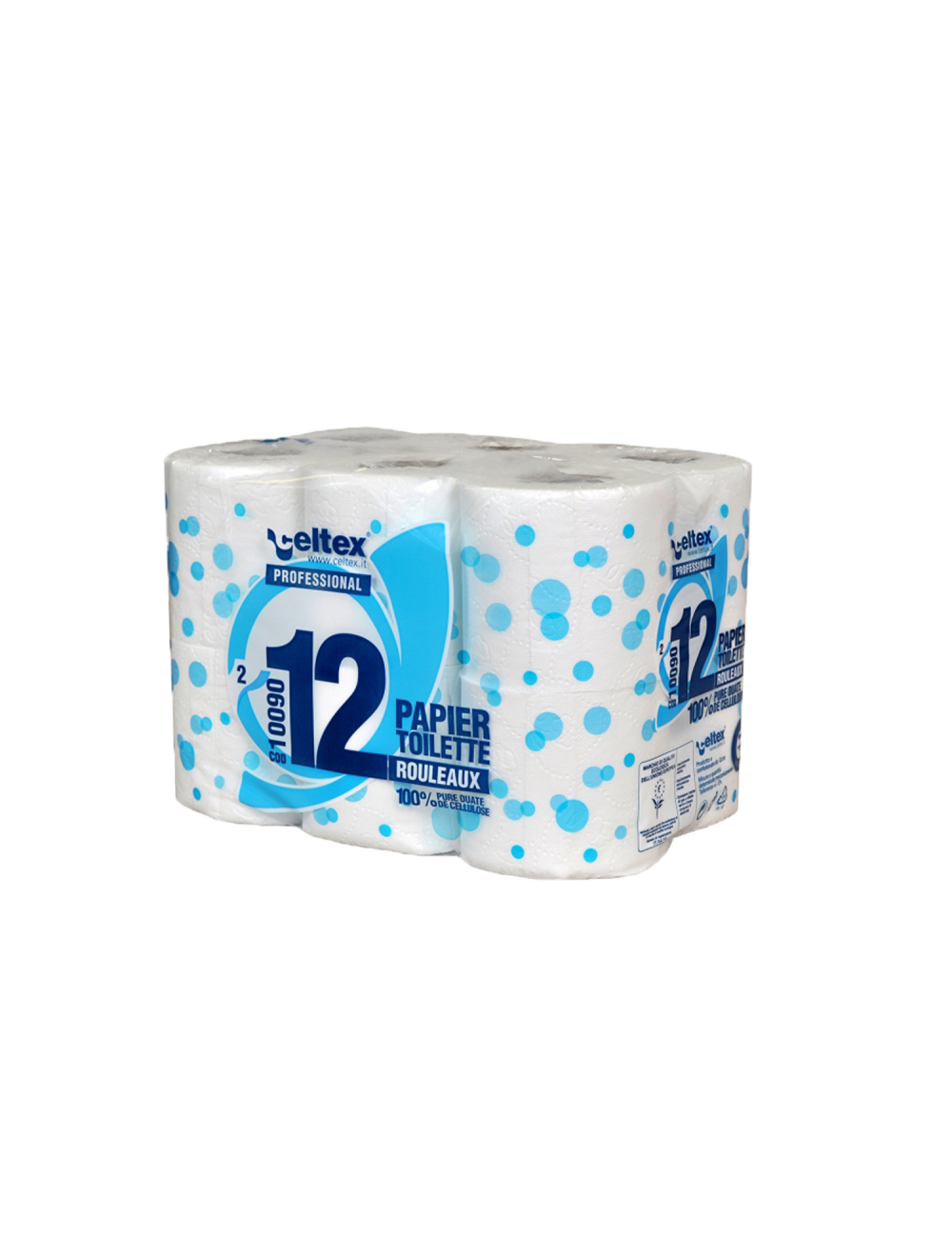 Paquet de 12 rouleaux de papier hygiénique 2 plis, de 180 feuilles, gaufrés.